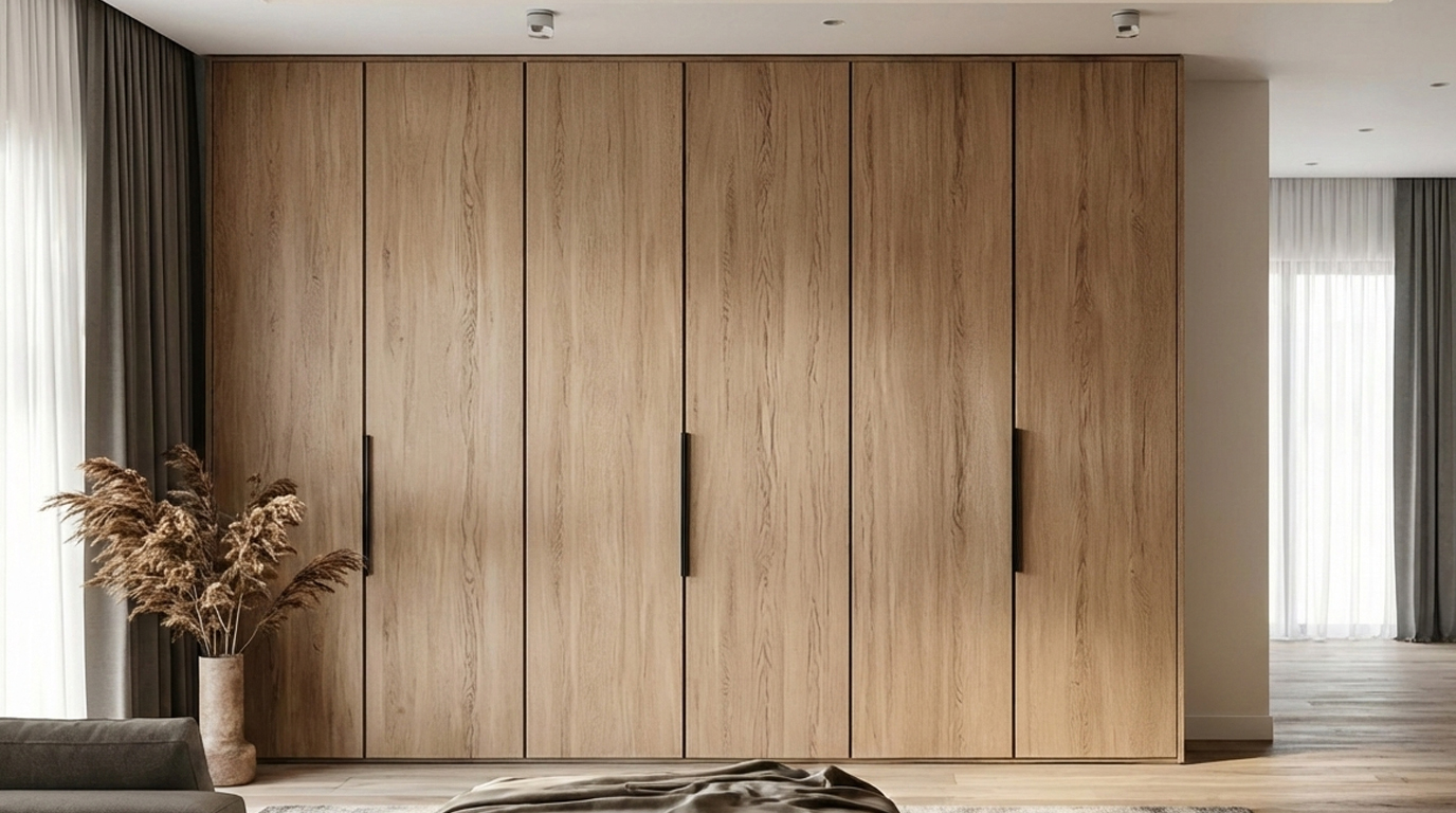 Veneer finishes use a thin layer of natural wood, giving wardrobes an authentic, warm, and organic appearance. Each veneer sheet has a unique grain pattern, making every shutter distinct.