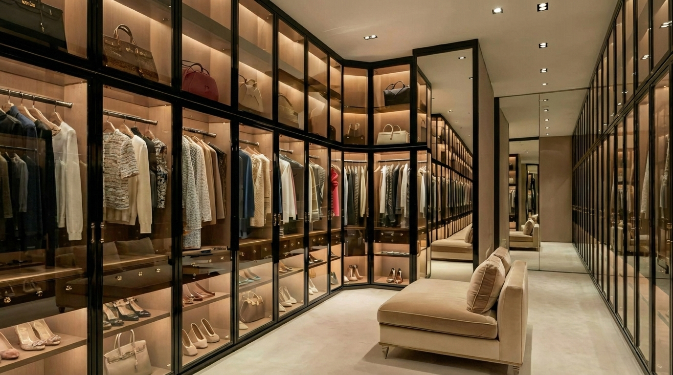 Glass finishes work best in luxury bedrooms and walk-in closets with controlled usage.